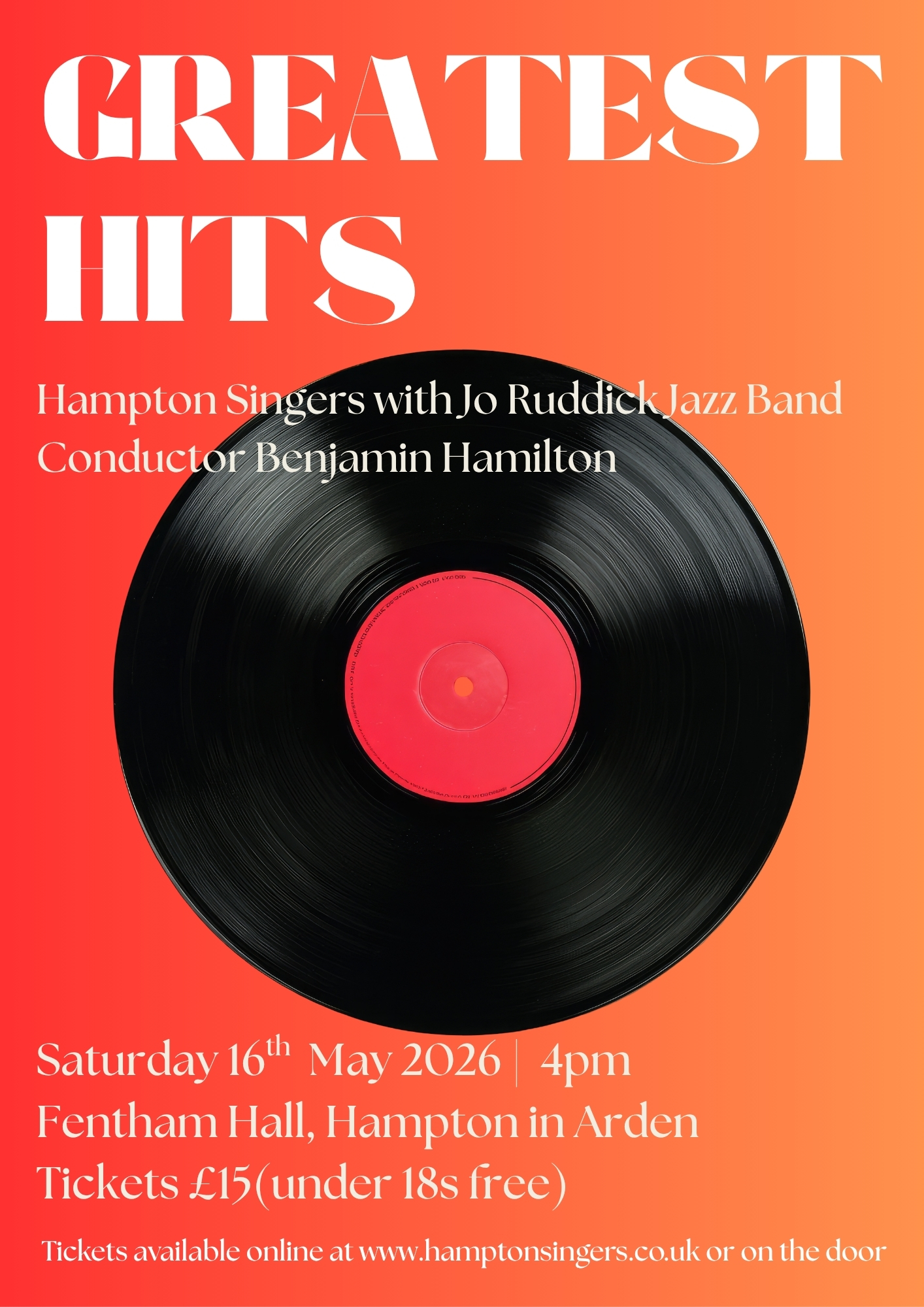 Celebrate this spring with a joyous selection of the most-loved pieces sung in the past by Hampton Singers. The programme includes well-known classical standards such as Handel’s ‘Hallelujah chorus’, extracts from Mozart and Brahms requiems, and works by Stanford and Clara Schumann. A more contemporary repertoire is represented by popular songs like Hallelujah (Leonard Cohen), Fields of Gold, Autumn Leaves and We’ll Meet Again. Special guests Jo Ruddick and her jazz band provide extra swing and sparkle.